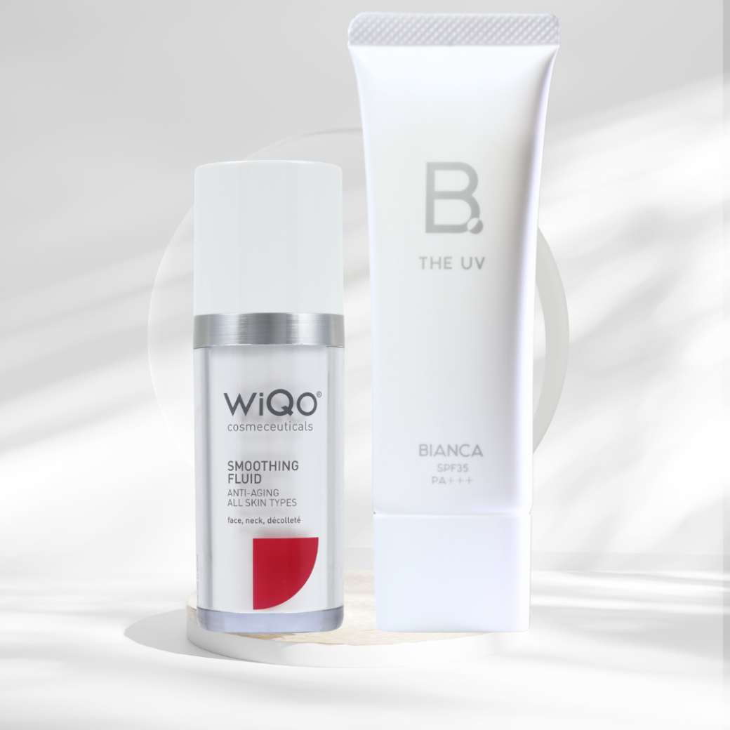左:WiQoフェイスフルイド美容液 右:B.THE UV
