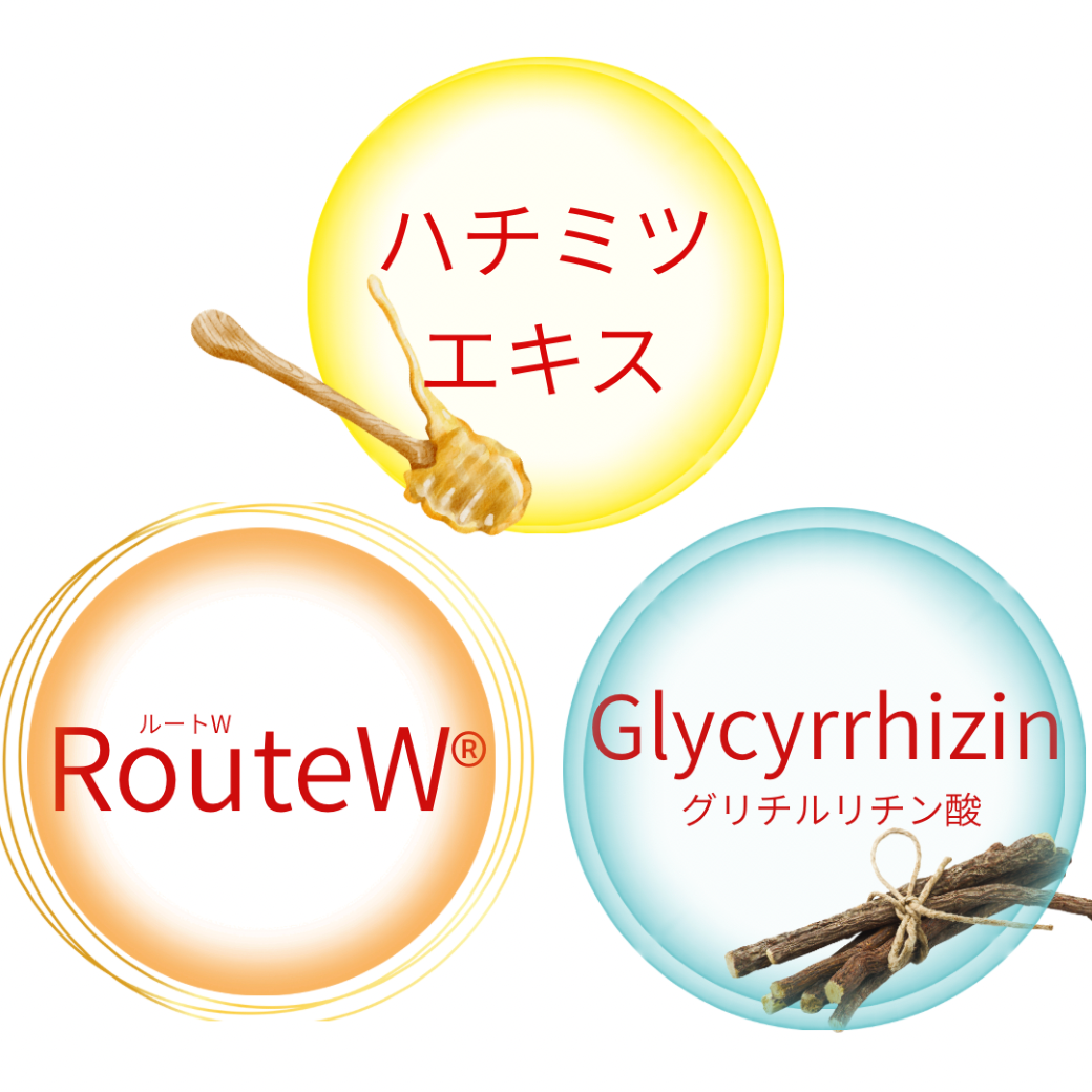 配合しているハワイ島キアヴェの森で採れる希少なホワイトハニーは、加熱やろ過を行わない“生ハチミツ”。酵素やビタミンを豊富に含み、肌荒れを防ぐ効果が。さらにブランド独自配合成分「ルートW®